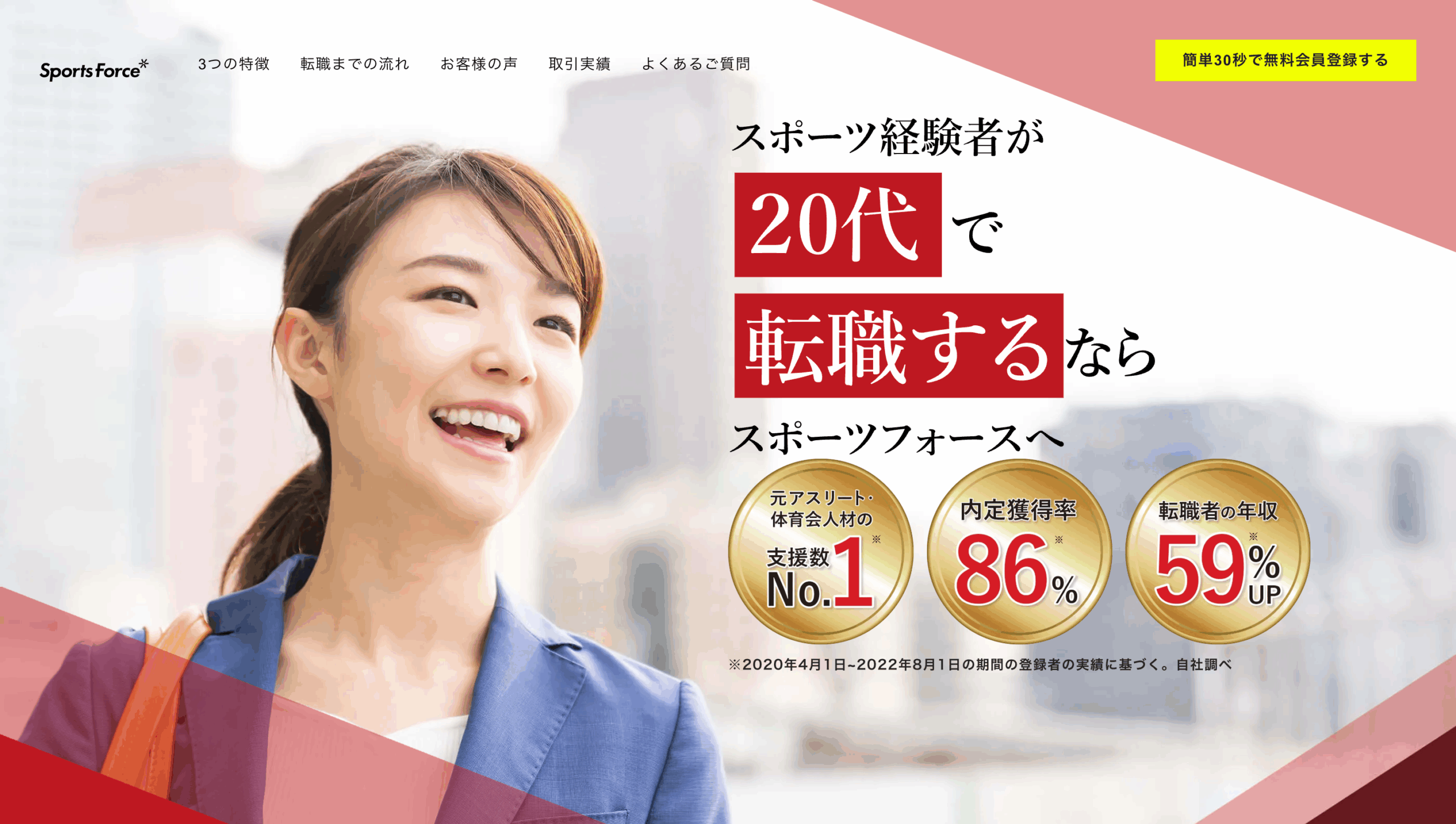 スポーツフォースは、元アスリートや体育会出身者のキャリア支援に特化した転職エージェントで、求人紹介に加えて履歴書・職務経歴書の添削、面接対策、条件交渉まで丁寧にサポートしてくれます。